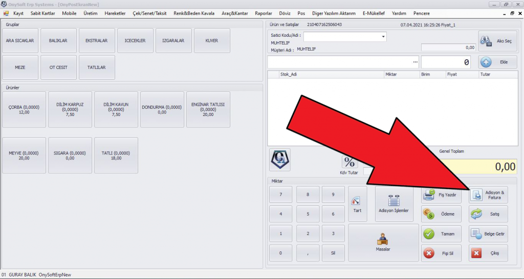 Adisyon veya fatura yazdırmak isterseniz görselde gösterilen şekilde yazdırabilirsiniz.